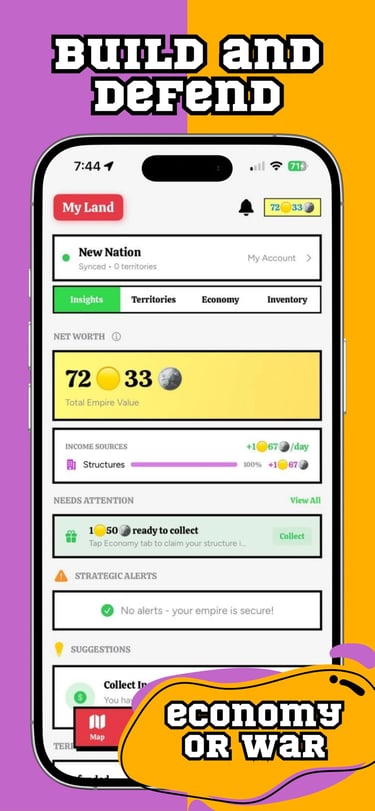 In WarMaps, every walk can become territory. Expand it, build on it, trade it, or surround enemies and take even more. Play aggressively, play defensively, dominate the economy. However you play, the goal is the same: own more of the world than anyone else.